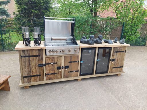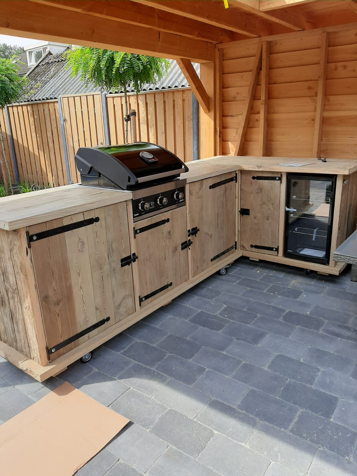 Wij van de dagbesteding zorg en activiteiten begeleiding noord Nederland maken voor u, uw buitenkeuken op maat en naar uw wensen. Dit doen we samen met de cliënten op de dagbesteding. Hierien heeft iedereen een andere taak van het schoonmaken van het hout tot het maken van de buitenkeukens. Het hout wat wij hiervoor gebruiken is damwanden hout. Het hout heeft vele jaren onder water gestaan. Doordat het vele jaren onder water heeft gestaan is het gehard. Waardoor het buitengewoon geschikt is voor buiten onder verschillende weersomstandigheden.